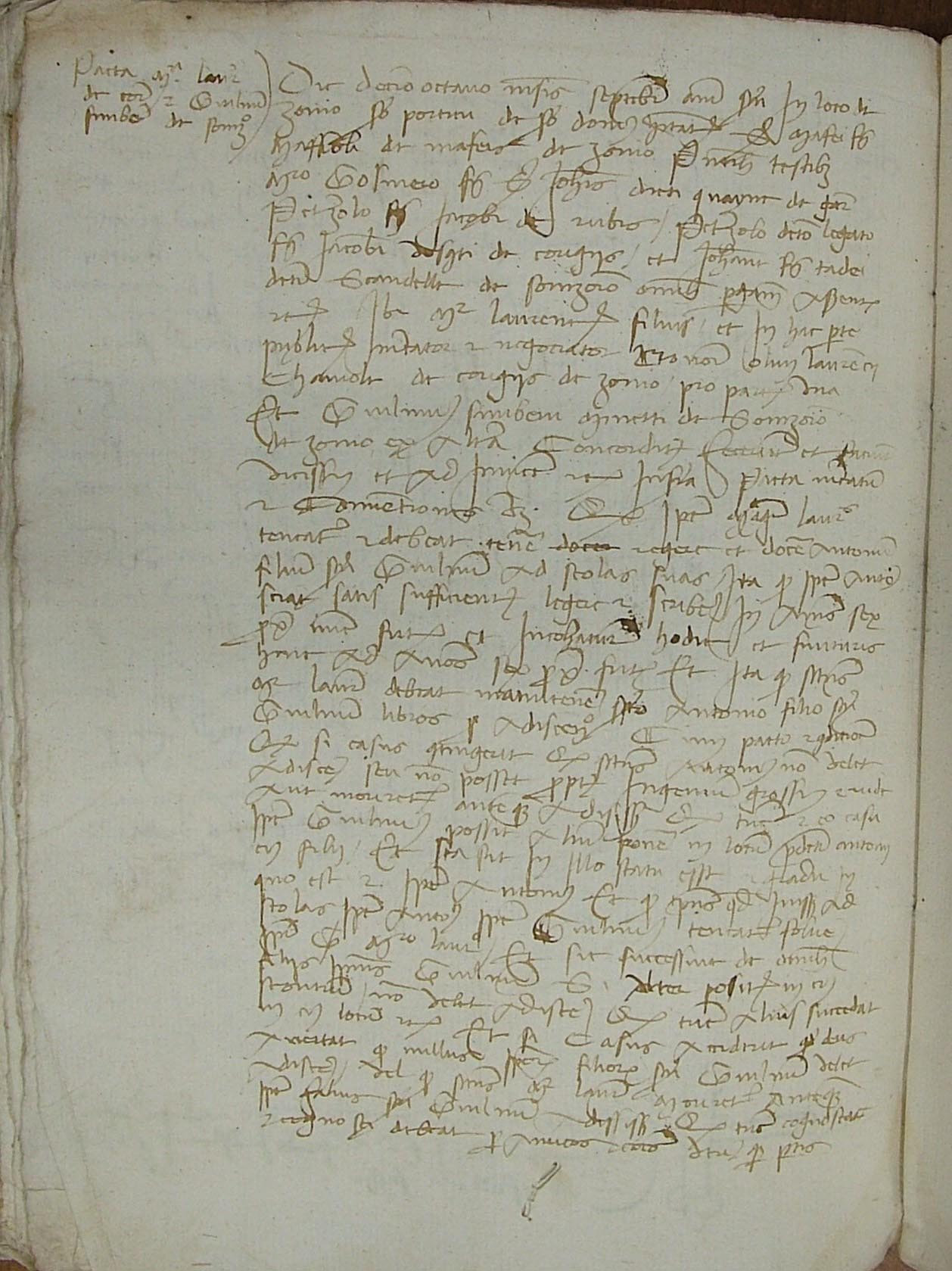 “Nel giorno diciottesimo del mese di settembre dello stesso anno (1466 da rogito precedente) nel luogo di Zonio (Zogno) sotto il portico di sotto della casa di abitazione di Mafeo fu Mafiolo de Mafeys di Zonio. Presenti per testimoni maestro Gosmero fu Giovanni detto Quayne de Gariboldis, Peterzolo fu Giacomo de Rubis, Peterzolo detto Legato fu Giacomo Visconti de Corigijs e Giovanni fu Tadeo detto Scandello de Sonzonio tutti bergamaschi e asserenti come sopra (dichiaranti di conoscere i contraenti e il notaio).