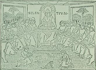Lo sviluppo crescente delle città verificatosi nel corso del 1200 e agli inizi del 1300 produsse tuttavia una rivoluzione in queste strutture portando sempre più le attività di insegnamento all’interno dei centri urbani con la costituzione delle “Universitas” che finirono con l’esautorare in modo totale le scuole monastiche e col diminuire in misura rilevante anche l’importanza di quelle delle cattedrali. Le “Universitas” alle origini erano delle corporazioni vere e proprie tra i maestri, preparati col tipo precedente di scuola, e gli allievi civili, finanziate con le prebende di questi ultimi prima di essere finanziate da qualche autorità pubblica cittadina, le quali concentrarono sempre più le loro attenzioni e interessi sugli aspetti pratici di queste discipline e meno su quelli teorici, filosofici e religiosi. In tal modo venne a configurarsi e si sviluppò una scuola laica, indipendente e alternativa a quella ecclesiastica. (foto-01)
